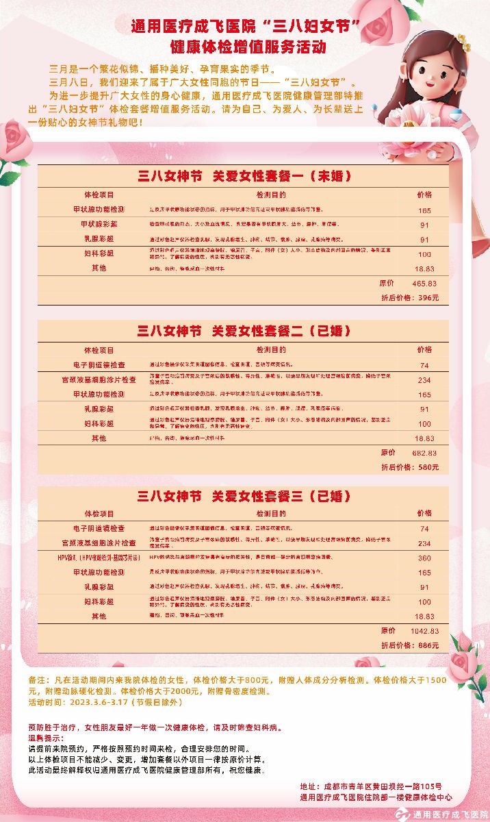 通用医疗成飞医院“三八妇女节”健康体检增值服务活动来啦!