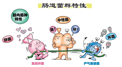 肠道是食物消化吸收的主要部位,肠道中有数量庞大、种类繁多的肠道菌落。有500-1000个不同的种类,数量约为100万亿,约为细胞数量的10倍。肠道菌落又可以分为有益菌(双歧杆菌、嗜酸乳杆菌、乳酸梭菌、酵母菌等),有害菌(葡萄球菌、产气荚膜杆菌、铜绿假单胞菌、大肠埃希菌等)及中性菌(大肠杆菌、肠球菌等),相互制约构成一个动态平衡系统。