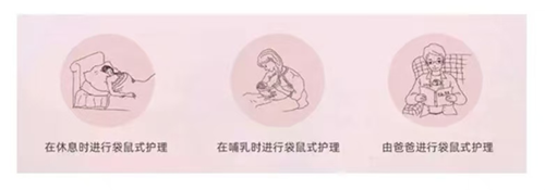 肌肤接触,也称为袋鼠式护理。袋鼠式护理是指对早产儿或低出生体重儿进行持续和长时间的(每天8-24小时,尽可能多的时间)皮肤接触的照顾和护理。如非新生儿病情危重,建议在出生后立即开始袋鼠式护理,同时给予宝宝纯母乳喂养。