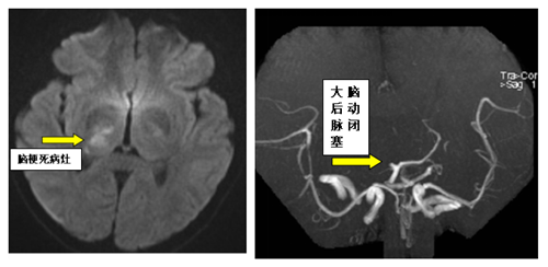 该患者急诊到我院后,急诊分诊考虑为急性脑卒中,立即进入卒中绿色通道,急诊CT排除脑出血,急诊MRI考虑右侧丘脑、枕叶急性脑梗死,并发现患者右侧大脑后动脉闭塞。