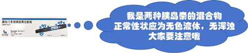 预混胰岛素是短效和中长效胰岛素按一定比例混合的制剂。在储存时,由于成分混合,其液体常呈现白色或类白色,这是正常的物理变化。在使用时,通过正确的混匀操作,可以使胰岛素恢复到均匀透明的状态。这类胰岛素有预混的人胰岛素——精蛋白人胰岛素混合注射液(普秀霖30R、优思灵30R&50R、诺和灵30R&50R、优泌林30/70、甘舒霖30R&40R);预混的胰岛素类似物——门冬胰岛素30注射液(诺和锐30R)、门冬胰岛素50注射液(诺和锐50R)、精蛋白锌重组赖脯胰岛素混合注射液(优泌乐25、优泌乐50)。