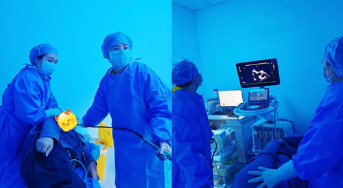 (我科任瑶副主任医师、黄柳源主管护师团队为患者行TEE检查中)