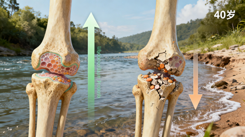 骨质疏松并不是突然发生的病,而是一场“沉默的骨量流失”。很多人以为骨头坚硬如石,但其实骨骼是一种“活组织”,每天都在分解与重建。年轻时,重建速度快于分解,我们的骨头密度增加;但在40岁以后,分解开始超过重建,骨量一点一点流失,就像河岸被水悄悄冲刷。女性在绝经后尤其容易出现“加速流失”,5年内骨密度可能下降高达20%。而等到出现背痛、驼背、甚至轻微摔倒就骨折时,往往已经是中重度骨质疏松。