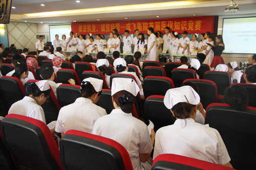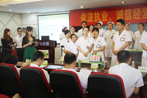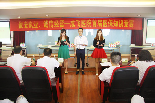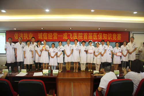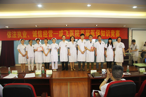为进一步加强全院职工掌握医保政策,更好地为参保人群服务,结合我院2014年质量月活动,2014年5月21日举办了---“依法执业,诚信服务”成飞医院首届医保知识竞赛。