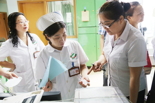 本次检查组由医保局万志红科长带队,青羊区人社局黄波科长一行十四人,分为就医管理、医疗服务质量管理、医疗费用结算管理、目录管理、信息系统管理、医疗保险基础管理、社会监督七个检查组,分别对我院执行基本医疗保险政策和履行服务协议情况进行了检查。