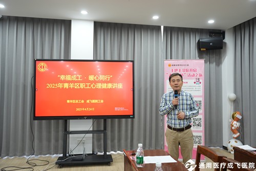 在五四青年节和国际护士节来临之际,为更好的关心关爱职工,帮助职工缓解工作压力、提升心理调适能力、营造积极向上工作氛围,在青羊区总工会的大力支持下,通用医疗成飞医院工会于4月24日下午举办了“幸福成‘工’·暖心同行”职工心理健康团建活动,吸引近80名职工热情参与,活动由工会主席杨锐主持。