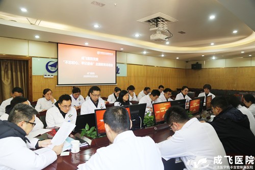 2020年1月16日下午,成飞医院党委在门诊三楼一会议室召开“不忘初心、牢记使命”主题教育总结会。航空工业成飞巡回指导组徐运乾,成飞医院领导班子、党代表、党支部书记、中层干部、职工代表专家等共30人参加会议。会议由党委书记罗洪萍主持。