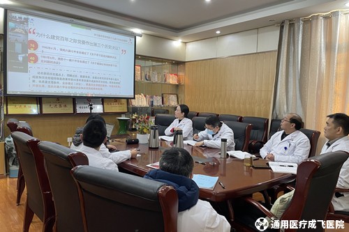 2021年12月29日上午,通用医疗成飞医院领导班子成员在门诊三楼二会议室参加通用医疗召开的线上十九届六中全会精神宣讲报告会。
