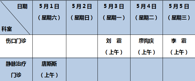 静脉治疗、伤口门诊值班表