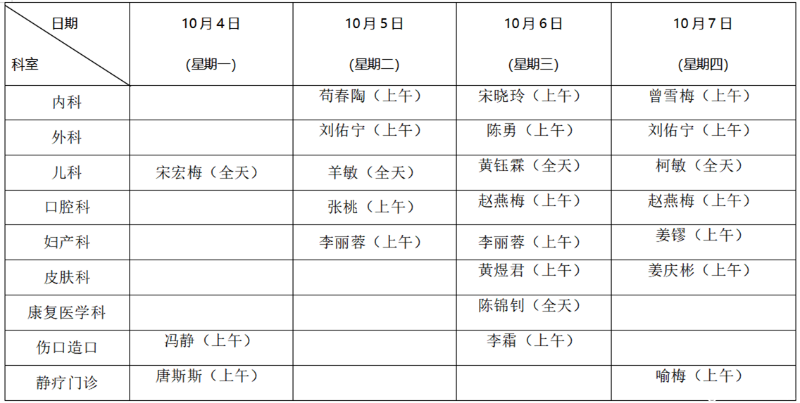 5.伤口门诊10月2日、10月4日、10月6日上午半天。